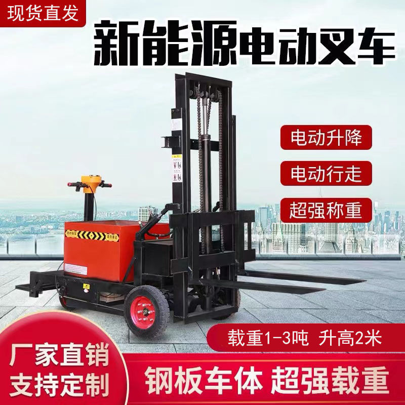 新化县小型电动叉车1吨站驾式2吨液压升高铲车全自动仓储堆高车